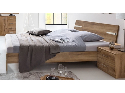 Moderne chambre à coucher avec un lit de palettes européens.